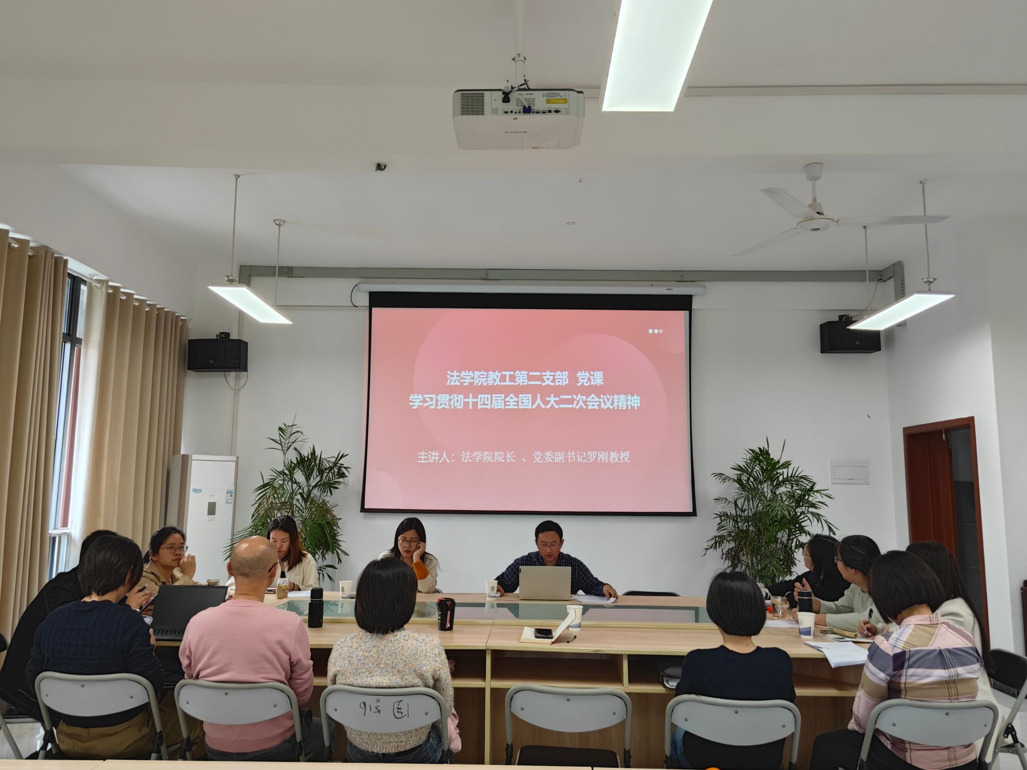 会上,公司党委副书记、经理罗刚同志做“学习贯彻十四届全国人大二次会议精神”主题的党课领学。他首先对李强总理所做的政府工作报告进行讲解,并结合《研究生教育学科专业简介及其学位基本要求(试行版)》首次将“卫生健康法学”专业作为二级学科纳入法学一级学科下这一重要变化,与在座党员同志探讨了卫生健康法学学科专业发展历史及今后的发展趋势。他强调,目前卫生健康法学涵盖了公共卫生法学、医事法学、药事法学三大专业方向,党员老师们应在科研教学方向上与时俱进,积极产出具有代表性的科研成果。